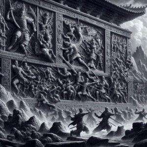 Na południowo-wschodnim krańcu doliny znajduje się Czarna Świątynia. To ogromna budowla wzniesiona na planie kwadratu o boku 50 metrów i ścianach wznoszących się na 5 metrów. Wykonana została z marmuru, który w promieniach słońca przybiera czarny odcień. Jej ściany ozdobione są misternymi płaskorzeźbami, które wyobrażają wielkie wojny i walczących, którzy na twarzach mają znamiona panicznego strachu.
