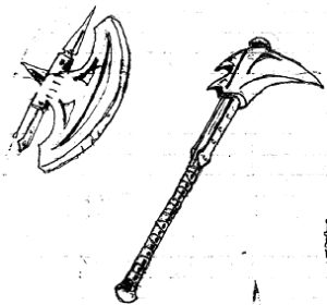 2. POGROMCA: broń ta została wyposażona w run, który przy każdym ciosie trafionym objawia swą moc, mianowicie bez żadnego oporu przecina wszelkie zbroje (trafionego przeciwnika nie chroni żadna zbroja)