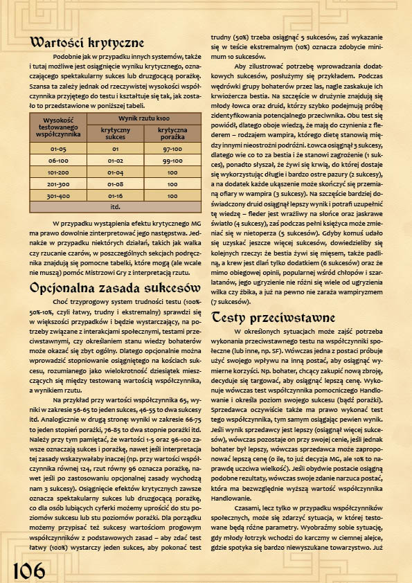 Zadziwił mnie pomysł konwertowania doświadczenia na inną skalę. Czy to trzeba? Jeśli chodzi o przyznawanie nowych umiejętności to dał bym pule start do wyboru i później jedną na poziom z puli, powiększającej się o lepsze umiejętności na progach poziomów, (0,1,5,10,15,20), [20 prawie poza skalą], szybszy poziom awansu spowoduje przewagę czarodziei, którzy szybciej osiągną nowe kręgi z potężniejszymi czarami i przede wszystkim zwiększą swe UM do poziomu 200, co jest wielce magiczną granicą. :arrow: Chyba, że rozwiązałeś to jakoś inaczej. (?)