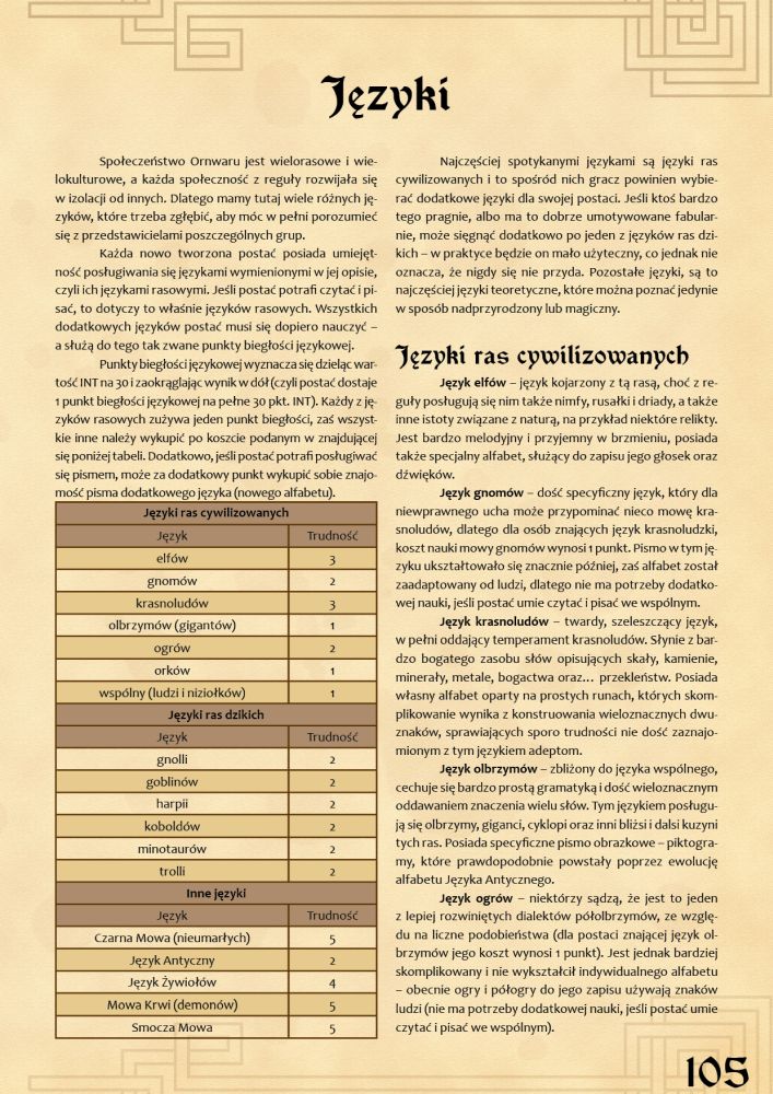 Nie chodziło o rasy obce, tylko o teoretyczne języki nadnaturalne - czyli takie, które nie funkcjonują w w życiu, jak mowa martwiaków czy demonów. Pozostałe jak najbardziej są w zasięgu - ale przy tworzeniu postaci jest tylko jeden z nich do wyboru. Później nie ma już ograniczeń.