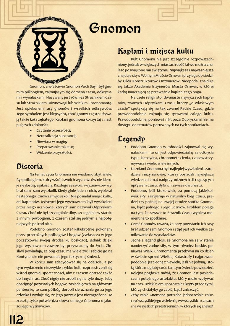 Dobrze, dziś na specjalną prośbę drugi z bogów - tym razem Gnomon. W podręczniku zaczynał jako półbóg, ale fajnie wypełnił lukę wśród bogów, poza tym bardzo mi się spodobał ten koncept, dlatego szybko został awansowany na pełnoprawne bóstwo.