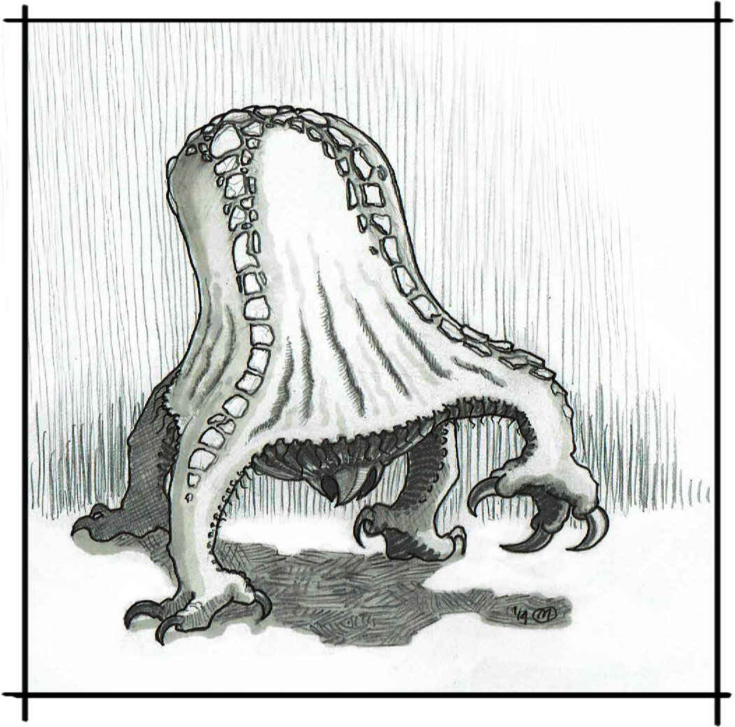 - Aura strachu – widok istoty działa na żywego przeciwnika (nie działa na demony, głowomeby lub martwiaki) jak czar Przerażenie (odpowiednik 6POZ czarnoksiężnika + POZ głowomeby). Test wykonuje się jednak na 1/2 odp. nr 2.