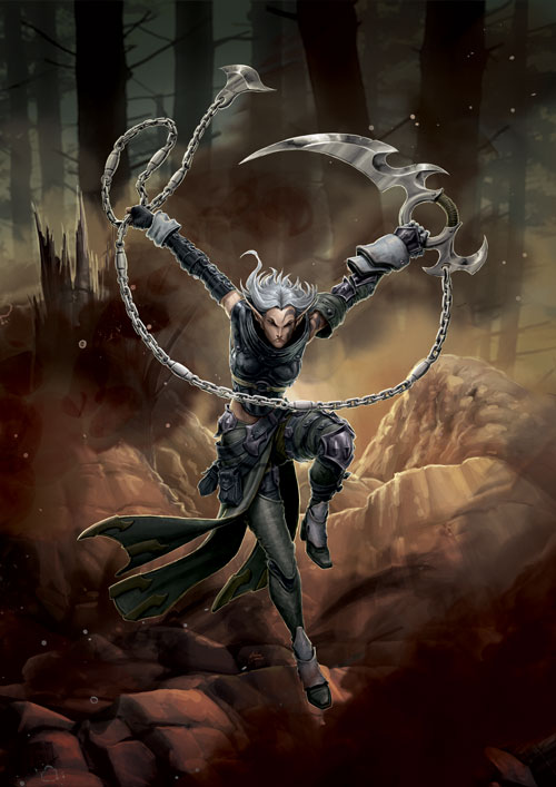 Ilustracja dosyć ładna, ale nie wyobraża sobie używania takiej broni w walce 😀 Rzucać na łańcuchu ostrzem tej wielkości ? tam fizyka nie obowiązuje ? 😉