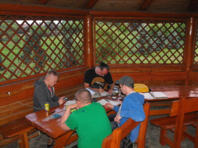 Nie pozwólmy jednak niezaprzeczalnie dzielnym bohaterom niepostrzeżenie zdominować relacji z imprezy zorganizowanej między innymi dla prowadzących ich graczy i wróćmy do rzeczywistości osnutej wokół altany. Z radością powitałem przybycie wprawdzie minimalnie udzielającego się na łamach portalu Hansa, który jednakże konsekwentnie i aktywnie uczestniczy w kolejnych edycjach Kryształkonu docierając na miejsce – co nadmienię jako ciekawostkę – każdorazowo innym samochodem. Tym razem, bez najmniejszego cienia wątpliwości sportowym wozem wybraliśmy się w poszukiwaniu sklepu, który zapewniłby nam dostęp do produktów żywnościowych na resztę imprezy. Wprawdzie wieczorna pora implikowała mniejszą dostępność pieczywa, jednak podstawowy cel, jakim było dla mnie zlokalizowanie punktu zaopatrzeniowego został osiągnięty. Pogoda miała tego dnia dla uczestników zlotu jeszcze jedną niespodziankę: solidny deszcz nie tylko przypomniał o tym jak kapryśna potrafi być aura, ale i spowodował przeniesienie sesji, w której debiutowałem do pokoju zajętego przez graczy z Łodzi, co oznaczało dla mnie brak dalszej możliwości przysłuchiwania się perypetiom „grupy żebraków”, która – jakby powiedzieli złośliwi – i tak została dobrze potraktowana, skoro mogła podczas intensywnych opadów zostać w altanie. Zdołałem tylko przelotnie stwierdzić, że los nie był dla nich litościwy, gdyż utracili swe humanoidalne powłoki, jednak więcej nie zdradzę, bo być może popsułbym kiedyś komuś zabawę.