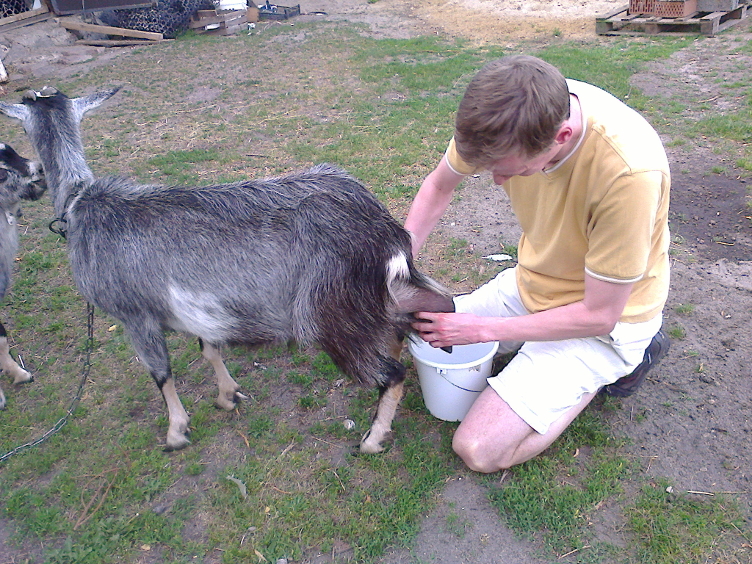 Powrót oznaczał dla grupy (już nie do końca) niepiśmiennych kolejne zmagania z wyzwaniami przewidzianymi przez kampanię, jednak nim dalsza gra ruszyła na dobre, z ciekawości skorzystałem z niespodziewanej propozycji gospodarza, co dodatkowo obiecał wynagrodzić zainteresowanemu. Stawką była szklanica koziego mleka dla śmiałka, który weźmie udział w jej dojeniu. Udaliśmy się zatem na sąsiednie podwórko, gdzie pasły się wcześniej zwierzęta. Mimo pewnego sceptycyzmu, poinstruowany wcześniej za co i jak ciągnąć, przystąpiłem do pracy. Koza chyba czuła niewprawne ręce i musiałem skupić się także na trzymaniu zapełniającego się w ślimaczym tempie mlekiem wiaderka, które gotowa była bez mrugnięcia okiem przewrócić. Złożył się na to jeszcze jeden czynnik – mianowicie wyraźnie mniejszy od niej koziołek bez ustanku próbował amorów, usiłując na nią wchodzić jak nie z tyłu, to z przodu. Rozeźlona nadmiarem interesantów koza była już dla mnie nie do opanowania i się poddałem. Gospodarz zapowiedział, że dokończy dojenie wewnątrz budynku, a jurny młodzik trafi już wkrótce na grilla. Zaiste okrutne! Może to jednak był żart? Wspomnianą nagrodę otrzymałem i wypiłem ze smakiem.
