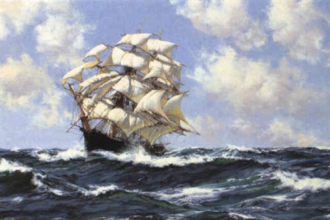 | Ogromny, schyłkowy kliper orczej konstrukcji. Na pierwszych dwóch masztach znajdują się jedynie żagle rejowe. Widoczne dodatkowe żagle – lizle, rozpięte na przedłużeniach reji. | Dążenie do coraz większych szybkości było w pełni uzasadnione i nie wynikało jedynie z pobudek ekonomicznych. Profilowane pod kątem dużej prędkości kadłuby kliprów nie były zbyt pojemne i jedynie krótki czas trwania rejsów pozwalał im zdeklasować wolniejsze, lecz ładowniejsze jednostki. Szybkość okazywała się coraz ważniejsza na samym szlaku – piraci zarzucali próby pojedynczego polowania na ekspresowe klipry i zaczynali działać we flotyllach, opracowując nieraz bardzo wyrafinowane taktyki przechwytywania ofiar. Jednocześnie rozwijali metody komunikowania się i korzystania z lotniczego zwiadu morskiego oraz magii. |
